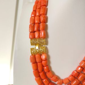 Collana Corallo Bamboo Elegante Con Chiusura Dorata